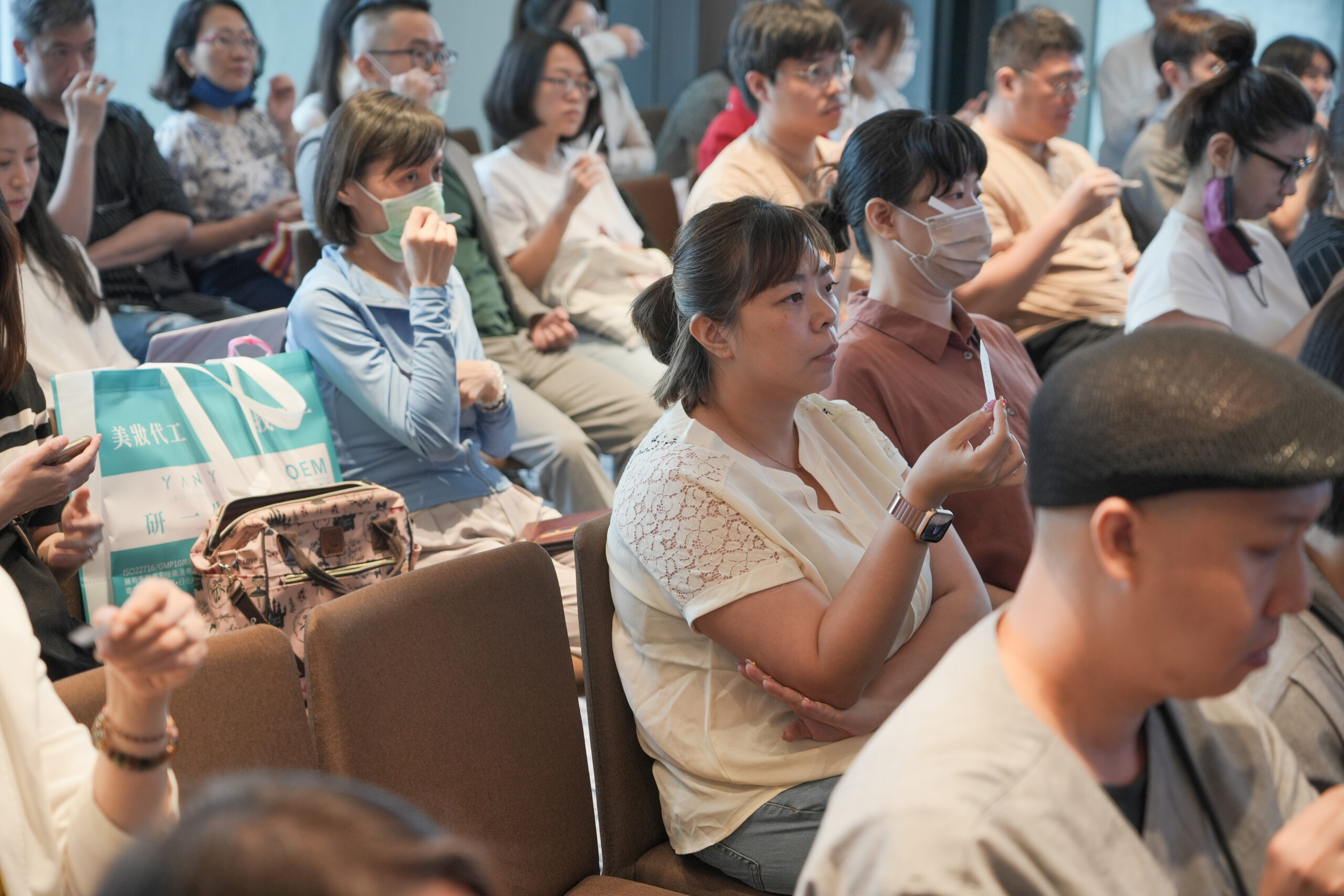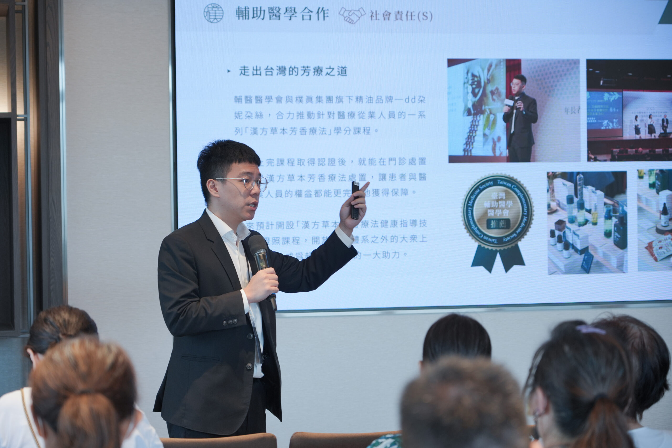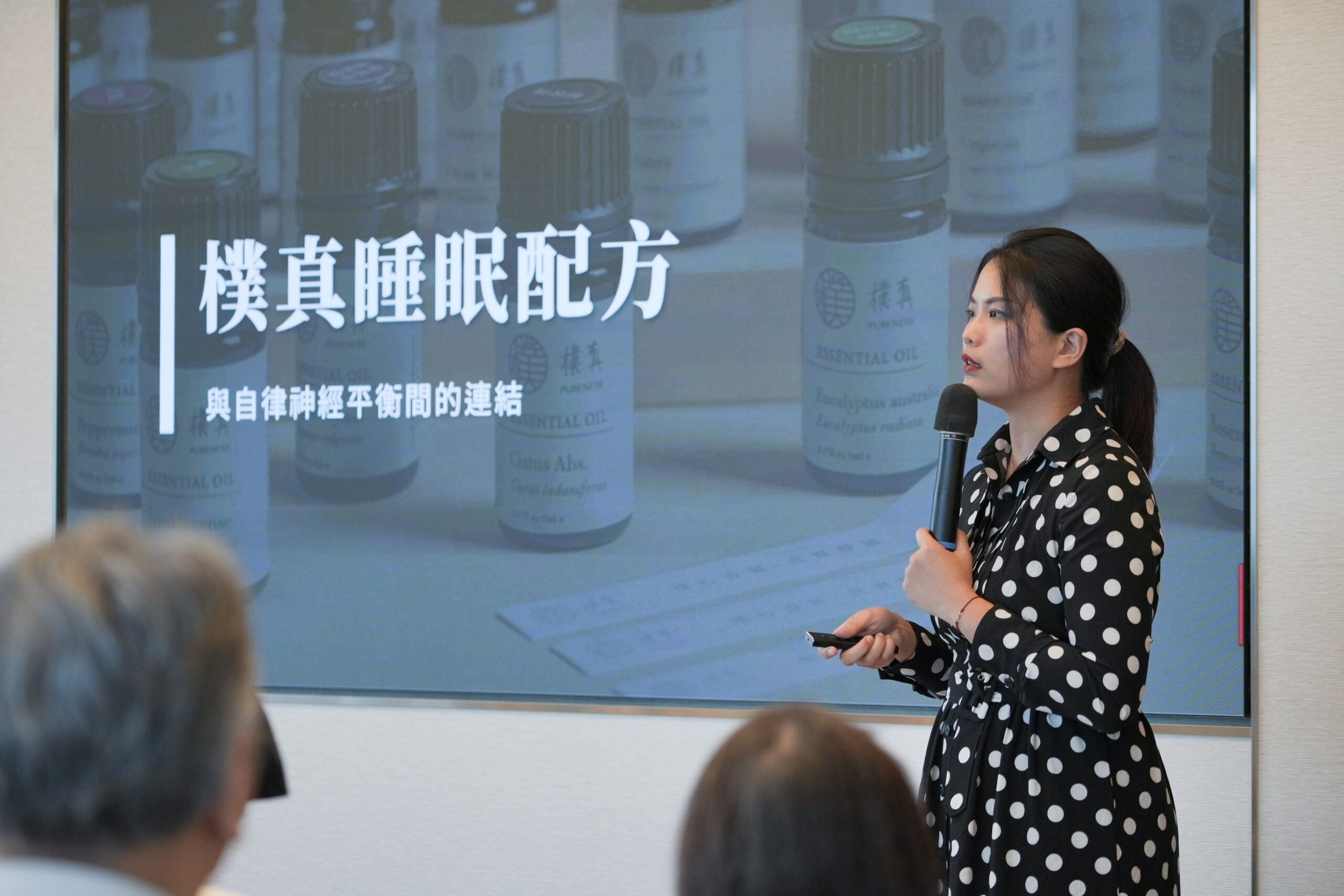 14:30 接著第二場講座由天然藥物學碩士,同時也是英國IFA芳療講師的 陳熙諪老師 發表「植萃力‧自然原萃能量應用」演講,揭示植物精油對於人體的治癒力,介紹樸真最新精油原料,包含日本柚子、咖啡、沉香、檜木、台灣香杉、台灣扁柏等,提供現場來賓試香體驗,並分享多項專利實驗配方,包含睡眠以及女性護理私密配方,樸真精油與阿斯利康及東北醫院進行200位的人體實驗,女性護理私密配方應用功效和安心的成分,已於國際ASCO癌症權威期刊發表(摘要號:1063)。
