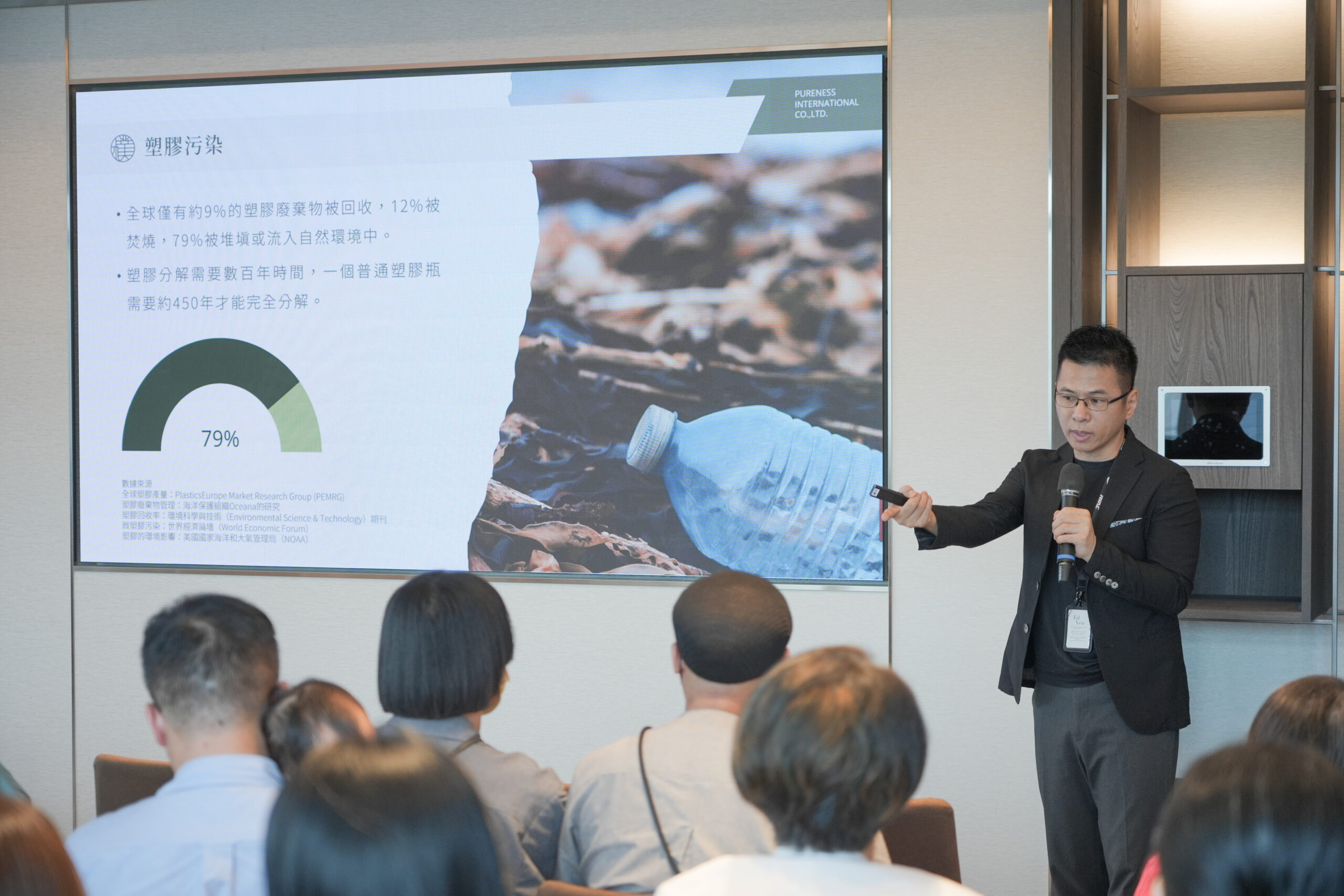研討會首先由樸真精油執行長 陳冠鈞 以開幕詞揭開序幕,介紹樸真的品牌服務、新原料開發、專利配方研究,以及上半年度發展的永續項目,並且推動環保瓶器的綠色研發,透過可分解的原料替代塑膠,達到減塑35%的成果,傳遞樸真在促進商業同時保護地球,實現環境與社會的共好。