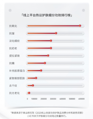 從目前護膚市場的消費趨勢來看,很大一部分使用者對抗氧化的認知不如其他功效深入,與其他強功效性需求相比,“抗氧化”似乎顯得非剛需,這也導致許多國產品牌並沒有在這方面加大投入。