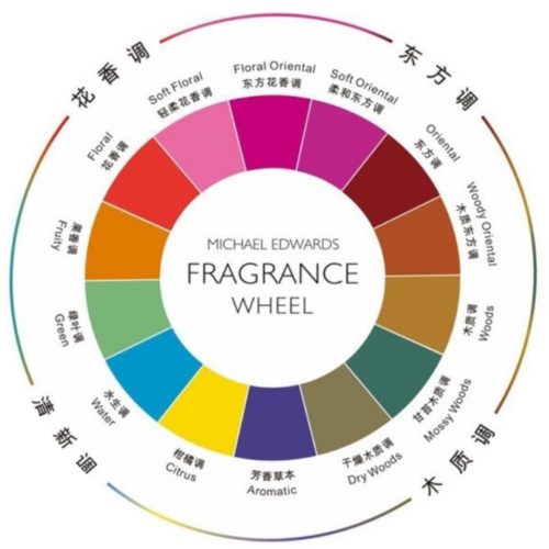 世間香味千奇百怪,借用香水專家Michael Edwards創作的Fragrance Wheel圖,可以把香氛氣味分為四個基礎香調,十四細分香調組成,如圖。