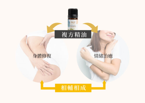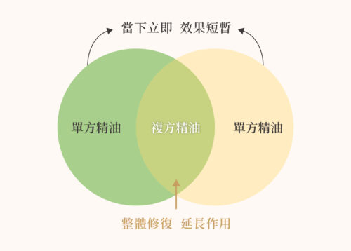 在這個配方裡麵包含了西方科學的實證精神,透過微觀的實驗證實每一個精油裡面它塗出的成分對於我們的人體的功效。複方精油有豐富不同的成分在裡面,所以它的功效更加靈活。同時還包含了東方哲理以人為本的思考,就是在不傷害這個本體機能狀態之下,試著運用精華找回我們身體本來具足的自我療愈以及再生的功能。