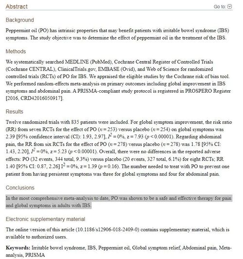 ▸ 胡椒薄荷精油(PO),對於IBS(大腸激躁症)的疼痛和整體症狀是有相關研究。