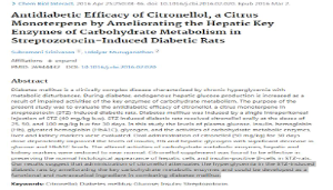 1. Srinivasan S, Muruganathan U. Antidiabetic efficacy of citronellol, a ctirus monoterpene by ameliorating the hepatic key enzymes of carbohydrate metabolism in streptozotocin-induced diabetic rats. Chem Biol Interact. 2016; 250:38-46.