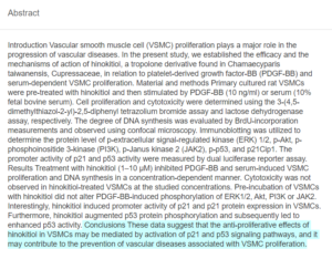 - Inhibitory effect of PDGF-BB and serum-stimulated responses in vascular smooth muscle cell proliferation by hinokitiol via up-regulation of p21 and p53. April 2018 Archives of Medical Science 14(3):579-587