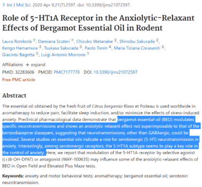 3. Bergamot ( Citrus bergamia ) Essential Oil Inhalation Improves Positive Feelings in the Waiting Room of a Mental Health Treatment Center: A Pilot Study: Essential Oil Inhalation Improves Positive Feelings. March 2017 Phytotherapy Research 31(Suppl)