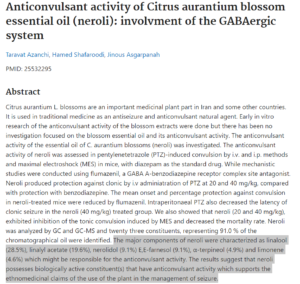 - Anticonvulsant activity of Citrus aurantiumblossom essential oil (neroli): involvment of the GABAergic system. Nat ProdCommun. 2014 Nov;9(11):1615-8.
