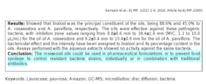 - 9.Jérémie Sœur et al. Selective cytotoxicity of Aniba rosaeodora essential oil towards epidermoid cancer cells through induction of apoptosis. Mutation Research/Genetic Toxicology and Environmental Mutagenesis Volume 718, Issues 1–2, 11 January 2011, Pages 24-32.