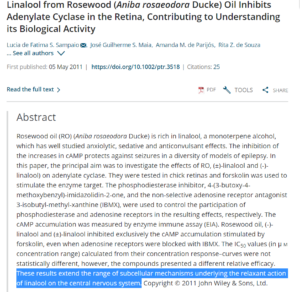 - Lucia de Fatima S. Sampaio, José Guilherme S. Maia, Amanda M. de Parijós, Rita Z. de Souza, Lauro Euclides S. Barata. Linalool from Rosewood (Aniba rosaeodora Ducke) Oil Inhibits Adenylate Cyclase in the Retina, Contributing to Understanding its Biological Activity. Phytotherapy Research,2011,Volume 26, Issue 1 p. 73-77.