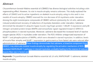 4. Yunkyoung Ryu et al. Sabinene Prevents Skeletal Muscle Atrophy by Inhibiting the MAPK-MuRF-1 Pathway in Rats. Int J Mol Sci 2019 Oct 8;20(19):4955.