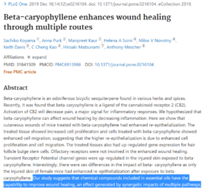 6. Sachiko Koyama et al. Beta-caryophyllene enhances wound healing through multiple routes, PLoS One. 2019 Dec 16;14(12):e0216104.