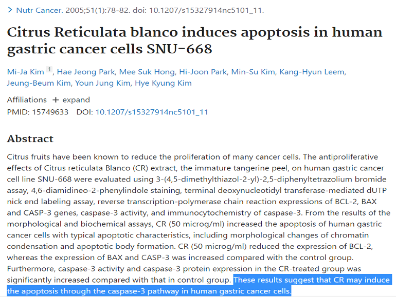 - Citrus Reticulata Blanco 誘導人類胃癌細胞凋亡 SNU-668 雜誌。營養與癌症第 51 卷,2005 年 - 第 1 期