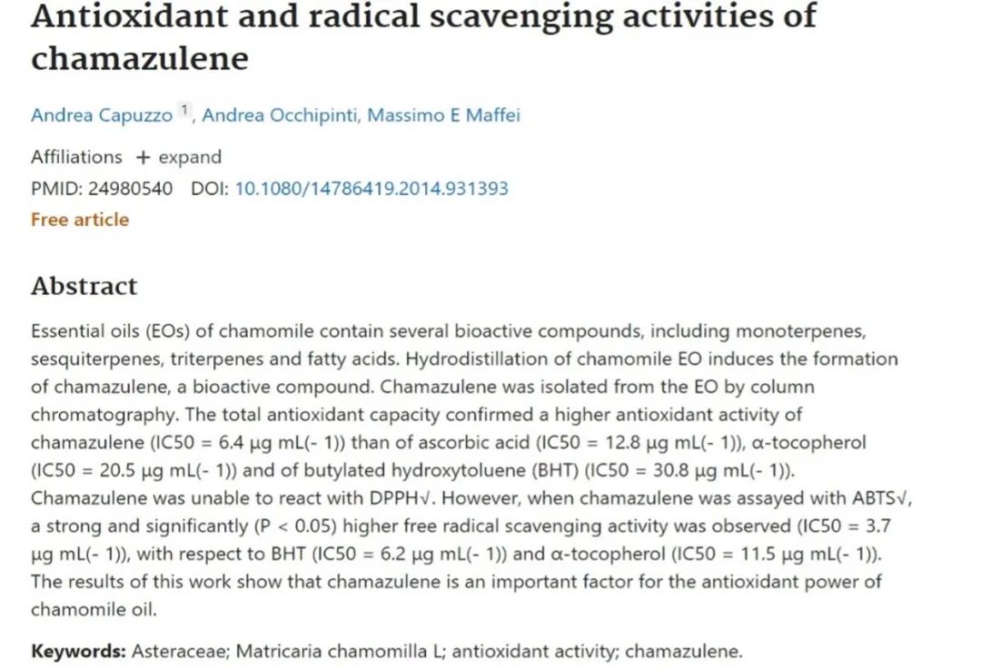 - Querio G, et al. Chamazulene Attenuates ROS Levels in Bovine Aortic Endothelial Cells Exposed to High Glucose Concentrations and Hydrogen Peroxide. Front Physiol. 2018.
